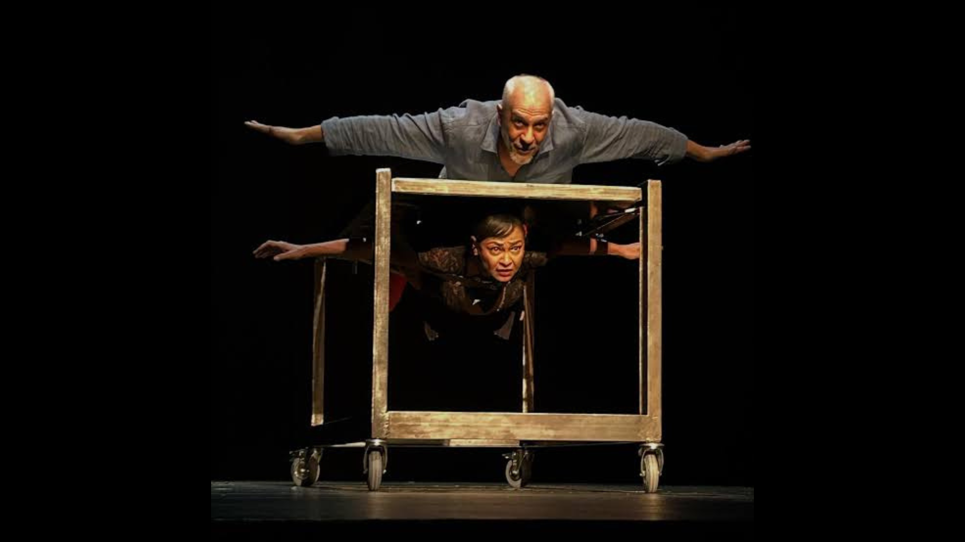 في المقابل، تبرز برناديت حديب، زوجة الشخصية الرئيسية، كقوة عكسية صامتة. طوال المسرحية، تمتد لحظات صمتها لتصبح مركز الجاذبية الحقيقي؛ فالعينان، والإيماءات الصغيرة، وحركة الجسد تحكي أكثر مما يمكن للكلمات أن ترويه. الصمت هنا ليس فراغًا، بل مساحة من التعبير المكثف، حيث تتحدث التفاصيل الصغيرة عما يُصادر من صوت المرأة، ويكشف عن الواقع الاجتماعي الذي يطمس حكايتها اليومية.