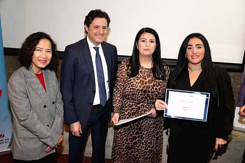 The ceremony was held in Lebanon at Beit Beirut, Sodeco, under the patronage of the Ministry of Information, with a U.S. delegation from New York attending, including Mavic Cabrera-Balleza (GNWP CEO), Katrina Leclerc (GNWP Director), and Alonna Despain (GNWP Middle East Representative).
